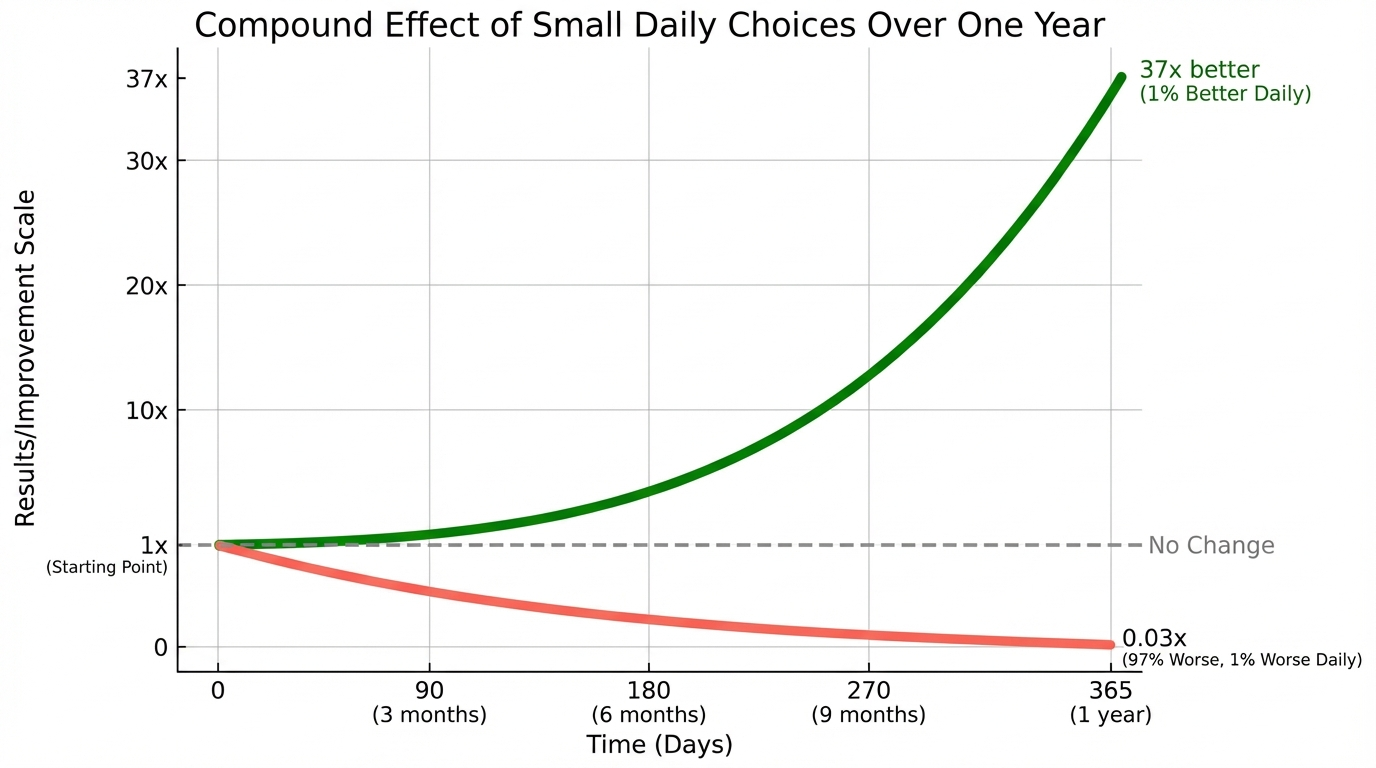 That's how real change happens. Not through willpower that eventually runs out. Not through motivation that fades when things get hard. Through tiny, consistent actions that compound over time into something meaningful.